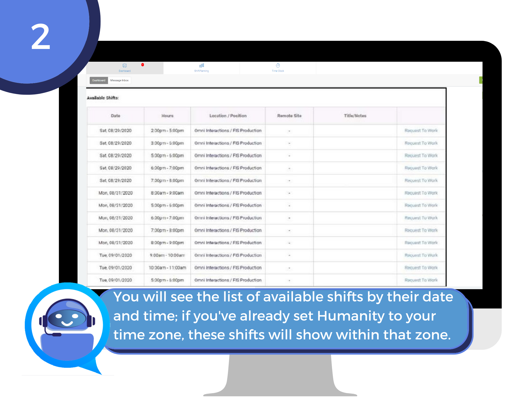 How to Add a Shift from the Humanity app From the Dashboard, shifts you are scheduled for appear at the top of the screen and available shifts by date and time appear at the bottom. Scroll through and tap on a shift to select it. You want to ensure ...